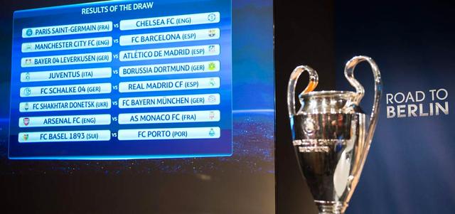 وأوقعت القرعة ريال مدريد الإسباني، حامل اللقب والمرشح بقوة للاحتفاظ به في ظل تألق معظم لاعبيه، خصوصا البرتغالي كريستيانو رونالدو والفرنسي كريم بنزيمة والويلزي غاريث بايل والكولومبي خاميس رودريغيز، في مواجهة سهلة مع شالكه الألماني.