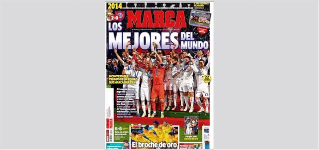 وكتبت صحيفة (أس): «أبطال العالم»، ونشرت صورة للحارس إيكر كاسياس حاملاً الكأس. وأضافت «كاسياس هو أكثر قائد فريق في العالم يحصد جميع الألقاب»، و«الكرة الذهبية لراموس».