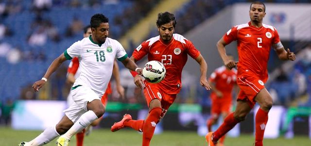 السعودية خلال لقاء سابق أمام البحرين في «خليجي 22». أ.ف.ب