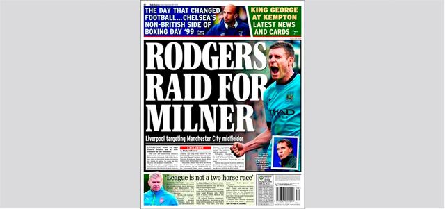 أبدى مدرب فريق ليفربول رودجرز اهتماماً كبيراً بالتعاقد مع مهاجم فريق مانشستر سيتي جيمس ميلنر خلال الفترة المقبلة، خصوصاً في الانتقالات الصيفية لتعويض النقص الكبير الذي تركه رحيل الأوروغوياني لويس سواريز في هجوم الفريق الصيف الماضي، وفشل لاعب مثل الإيطالي بالوتيلي في تعويضه، كما أن بقية اللاعبين لا يتوافرون على البنية الجسمانية والمهارة التي يمتلكها ميلنر، ويرى فيها ليفربول خير بديل لسواريز في الأحمر. «ديلي إكسبرس»