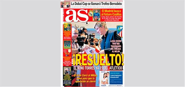 أبرزت صحيفة «أس» الإسبانية في عددها أمس، صورة للنجم فرناندو توريس الذي يستعد للعودة إلى بيته أتلتيكو مدريد، مشيرة إلى أن الدوري الإسباني يستعد لاستقبال النجم الكبير. كما تطرقت الصحيفة إلى السياسة التي يتبعها نادي ريال مدريد الذي بات يتبع سياسة التعاقد مع لاعبين صغار في السن قبل أن يشرعوا في طور تألقهم وترتفع أسعارهم. وقام ريال مدريد باتباع هذا الأسلوب في تعاقده مع ماركو أسيسينو الذي نجح في الحصول على خدماته مقابل ثلاثة ملايين و900 ألف يورو دفعها لناديه القديم مايوركا. دبي ـــ الإمارات اليوم