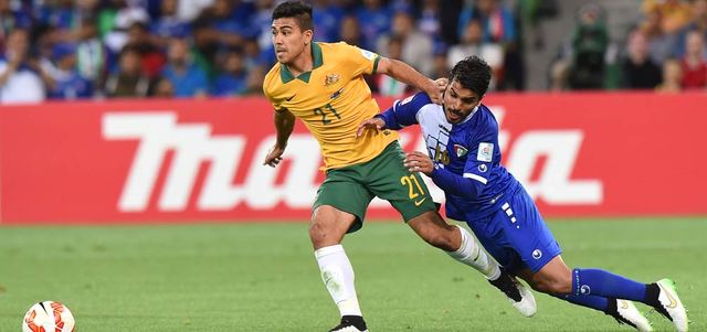 لوونغو كان نجم اللقاء لأستراليا أمام الكويت وقاد الكنغر للفوز برباعية. أ.ف.ب