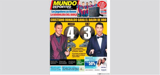 اقترب البرتغالي كريستيانو رونالدو كثيراً من الأرجنتيني ليونيل ميسي في جائزة الكرة الذهبية العالمية، حيث لم يعد يفصل بينهما إلا جائزة واحدة ويتعادلان بعد أن توج رونالدو أول من أمس للمرة الثالثة، في حين لايزال ميسي متقدماً بأربع جوائز، ما يشير إلى قوة الصراع بين نجمي الريال وبرشلونة الذي ينتقل من الملاعب إلى الجائزة الاكبر والأشهر في العالم، في حين أن اللاعبين الآخرين يتبادلون المركز الثالث في كل سنة خلف النجمين الأول والثاني.
