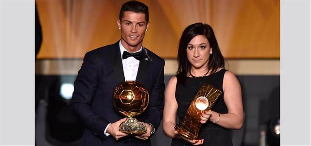 رونالدو مع الألمانية نادين كيسلر الفائزة بجائزة أفضل لاعبة في العالم. أ.ف.ب
