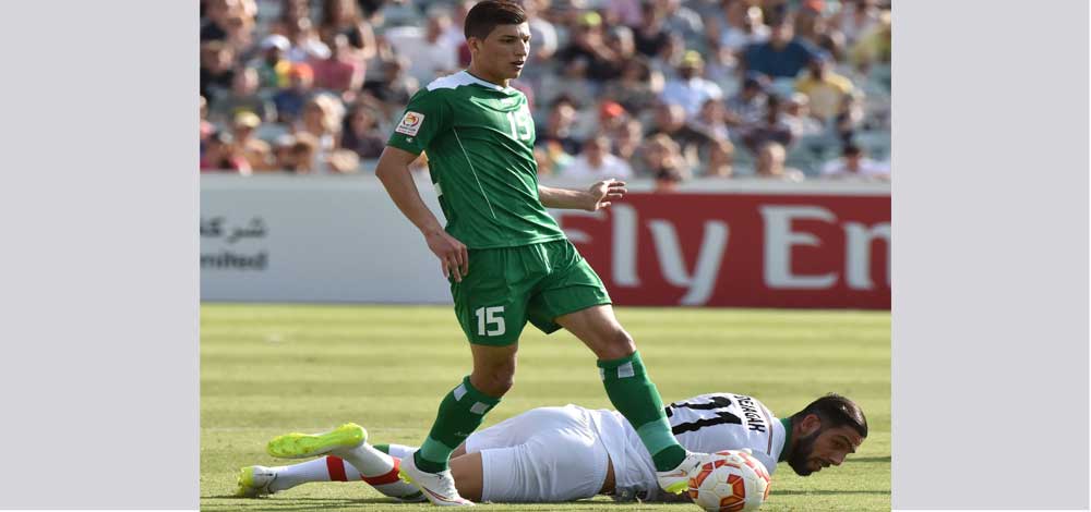 المنتخب العراقي اسقط نظيره الإيراني في مباراة ماراثونية ليتأهل إلى المربع الذهبي لبطولة أمام آسيا 2015. أ ف ب