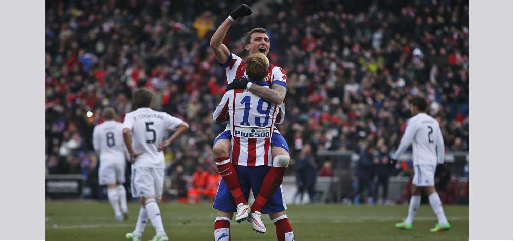 حسم اتلتيكو مدريد حامل اللقب من جديد دربي العاصمة بفوز كاسح وتاريخي على ضيفه وجاره ريال مدريد المتصدر 4-صفر في المرحلة الثانية والعشرين من الدوري الاسباني لكرة القدم.