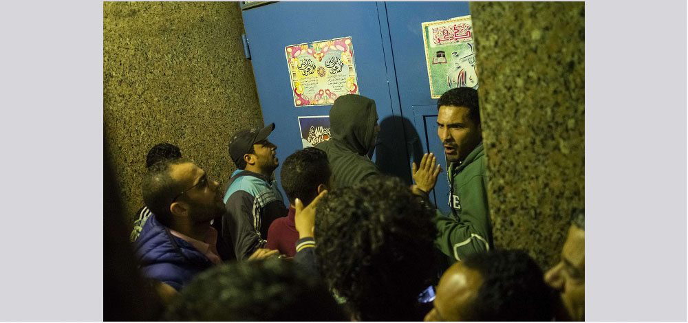 بعض أهالي الضحايا أمام مشرحة "زينهم" في القاهرة - أ ف ب