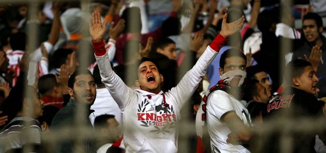 مشجع زملكاوي يبكي خلف سياج الملعب. أ.ف.ب