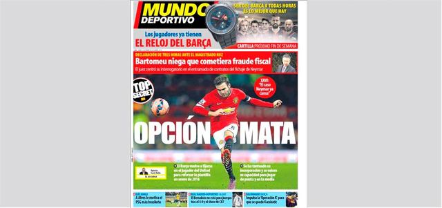 يجهز فريق برشلونة عرضاً من أجل استقدام النجم الإسباني في صفوف مانشستر يونايتد، خوان ماتا، على الرغم من حظر الانتقالات المفروض عليه حتى يناير من العام المقبل. ويسعى برشلونة إلى تأمين خط وسط الفريق، خصوصاً مع احتمال اعتزال نجمه تشافي هيرنانديز. وسيكون ماتا الإضافة الفنية المطلوبة للفريق، لتكتمل خطوطه، مع وجود الثلاثي الهجومي، نيمار وسواريز وميسي، وأيضاً سيشكل ثنائياً مميزاً مع انييستا.