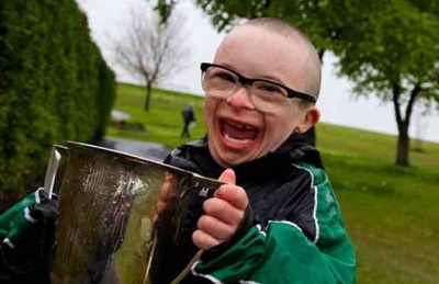 بالفيديو.. طفل مصاب بـ"متلازمة داون" يفوز بجائرة أفضل هدف