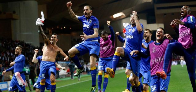 فرحة كبيرة للاعبي اليوفي بعد التأهل على حساب موناكو. أ.ب