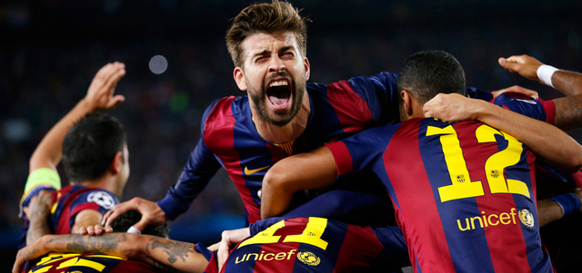 فرحة هستيرية من بيكيه خلال فوز برشلونة على البايرن. رويترز