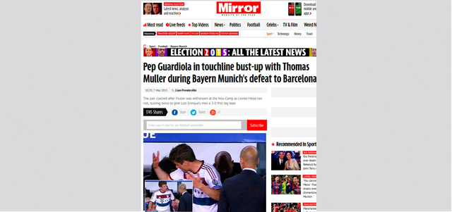 التقطت الكاميرات خلال مباراة برشلونة وبايرن ميونيخ في نصف نهائي دوري أبطال أوروبا، أول من أمس، انفعال توماس مولر على مدربه الاسباني بيبي غوارديولا خلال تبديله في نهاية المباراة، حيث لم يكن مولر راضياً على قرار مدربه، ورفع يده في وجهه، ما قد يعيد قصة الخلاف السابق بين الاثنين، والذي كاد على اثره مولر أن يغادر الفريق، قبل ان يتم احتواء الأمر.