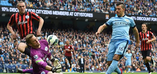 أغويرو سجل 3 أهداف في مرمى كوينز بارك. أ.ف.ب