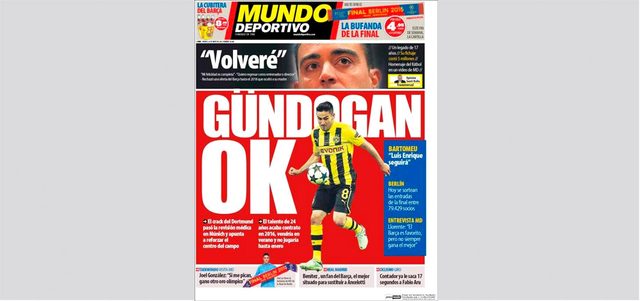 خضع لاعب بروسيا دورتموند، ذي الأصول التركية، غاندوغان، للفحوصات الطبية، بعد أن تم عقد اتفاق مبدئي للانتقال إلى برشلونة، حيث يصل إلى الفريق هذا الصيف، لكن لن يلعب إلا في يناير بسبب حظر التعاقدات الذي تعرض له برشلونة من قبل الاتحاد الدولي، الذي ينتهي في الانتقالات الشتوية المقبلة. ومن المتوقع أن تكون هذه أولى صفقات برشلونة للموسم المقبل، خصوصاً أن اللاعب مطلوب بشدة في وسط الملعب بعد رحيل تشافي إلى السد القطري.