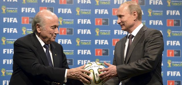 الاتحاد الأسترالي لا يثق بـ «فيفا» بسبب الفساد.. وفي الصورة بلاتر مع الرئيس الروسي بوتين في لقاء سابق. رويترز