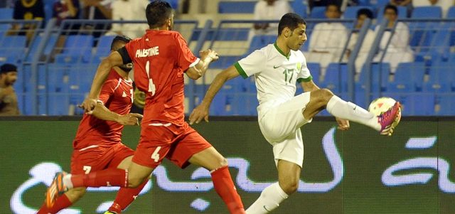 المنتخب السعودي عانى الأمرين أمام نظيره الفلسطيني. أ.ف.ب