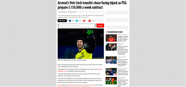 يبدو أن صفقة الحارس تشيك لن تمضي كما كان مخططاً لها من قبل أرسنال، الذي سبق الجميع بالتقدم بطلب لضم الحارس، حيث طفا على السطح باريس سان جرمان الفرنسي، الذي سيعرض على تشيك راتباً أسبوعياً يصل إلى 150 ألف إسترليني، وهو ما سيصعب الأمر كثيراً على أرسنال الإنجليزي، الذي سيجد نفسه مضطراً إلى رفع عرضه من أجل هزيمة الفرنسيين في هذا المزاد. «ميرور»