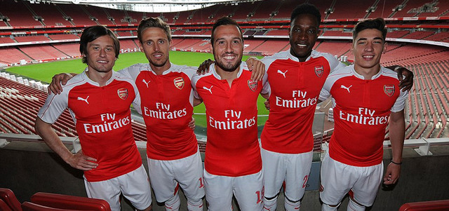 لاعبو أرسنال يستعرضون القميص الجديد. من المصدر