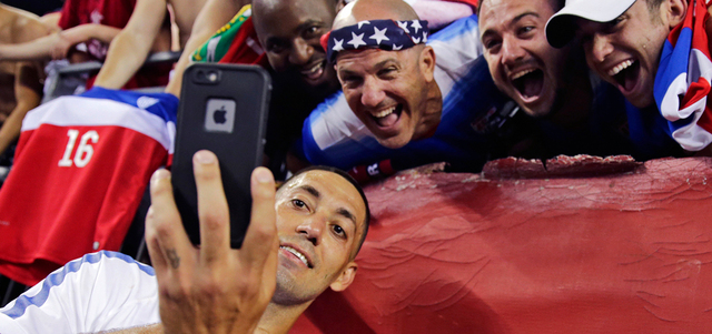ديمبسي يلتقط «سيلفي» مع الجمهور الأميركي. أ.ف.ب