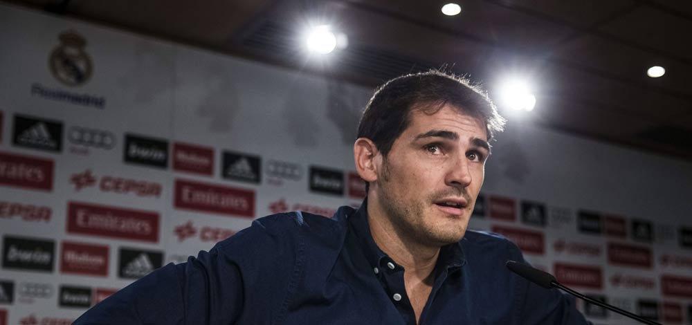 أجهش حارس مرمى ريال مدريد والمنتخب الأسباني لأكثر من عقد من الزمن بالبكاء في المؤتمر الصحافي الذي أعلن فيه رحيله عن النادي الملكي إلى نادي بورتو البرتغالي.