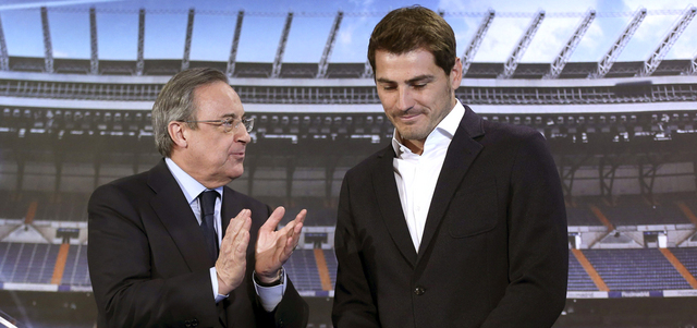 وبعد وداع ممزوج بالدموع خلال مؤتمر صحافي كان كاسياس فيه وحيداً، وجد بيريز الاثنين لتحية الحارس بطل العالم في مونديال 2010 في جنوب إفريقيا، برفقة مجموعة من المشجعين في ملعب النادي سانتياغو برنابيو.