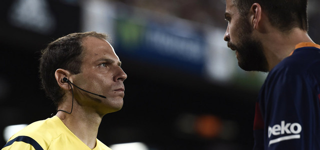 بيكيه شتم والدة الحكم المساعد خلال لقاء بلباو وبرشلونة. أ.ف.ب