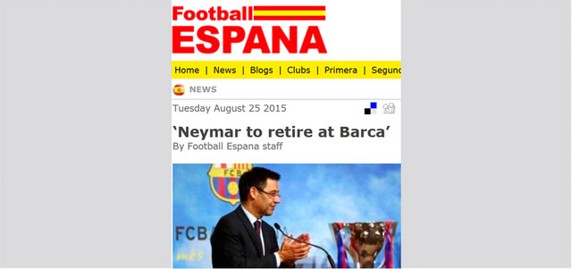 أكد رئيس نادي برشلونة الإسباني لكرة القدم جوسيب بارتوميو، أن المهاجم البرازيلي الشاب نيمار سيتقاعد في كاتالونيا، وأنه لن يلعب لأي فريق آخر غير برشلونة طوال مسيرته الكروية وحتى نهايتها. وكان بارتوميو يرد على أخبار العرض الخيالي الذي ذكرت وسائل إعلام إنجليزية وإسبانية قبل يومين أن مان يونايتد بصدد تقديمه لفسخ عقد نيمار مع برشلونة مقابل 240 مليون جنيه إسترليني. وأكد بارتوميو أن النادي سيجدد عقد نيمار قريباً.
