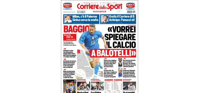 قال أسطورة كرة القدم الإيطالية، روبيرتو باجيو، إن نجم ميلان ماريو بالوتيلي، أحد أفضل اللاعبين في العالم حالياً، إلا أنه يصر دائماً على إظهار صورة سيئة له أمام وسائل الإعلام، وهو ما لا يعكس حقيقته فعلا». وقال باجيو في حديثه عن الكرة الإيطالية إن اليوفي لايزال المرشح الأول للقب الدوري، في حين كشف أن الفريق الوحيد الذي شجعه، ولم يكن لاعباً فيه، هو بوكا جونيورز الأرجنتيني، وأن أجمل أهدافه التي سجلها حينما كان لاعباً لأتلانتا. «كوريرا ديلو سبورت»