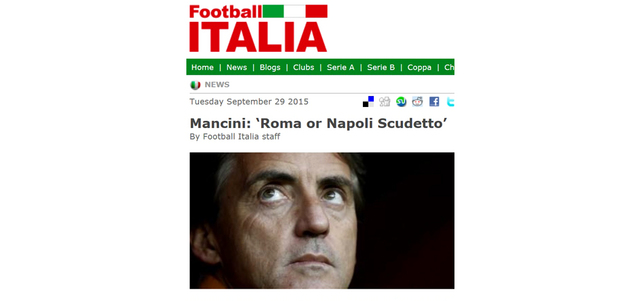 أكد مدرب إنترميلان الإيطالي لكرة القدم، روبيرتو مانشيني، أن لقب الدوري الإيطالي هذا الموسم لن يخرج من فريقي روما أو نابولي، مستبعداً أن يكون فريقه قادراً على المنافسة على السكوديتو هذا الموسم، كاشفاً أنه سعى في بداية الموسم إلى التعاقد مع النجم الفرنسي بول بوغبا. وأوضح مانشيني أنه بعد 13 جولة من الدوري، ستتضح صورة المنافسة أكثر. «فووتبل إيطاليا»