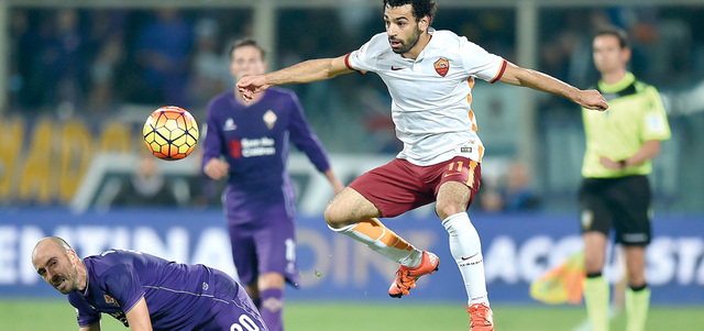 محمد صلاح تألق مع روما أمام فيورنتينا وسجل هدفاً. أ.ف.ب