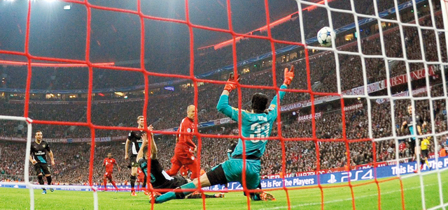 شباك أرسنال اهتزت خمس مرات أمام البايرن.. وفي الصورة هدف روبن بطريقة مميزة. إي.بي.إيه
