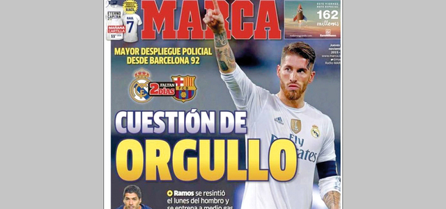 خصصت شرطة مدريد تأميناً غير معتاد لمباراة «الكلاسيكو» يوم غدٍ، في ملعب سانتياغو بيرنابيو، بين ريال مدريد وبرشلونة، وذلك في أعقاب الهجمات التي حصلت قبل أسبوع في العاصمة الفرنسية باريس وأودت بحياة ما لا يقل عن 129 شخصاً وجرح المئات. ويخشى الإسبان والأوروبيون من أي عمليات تفجير قد تستهدف هذه التجمعات الكبيرة، حيث يعدّ «الكلاسيكو» الأهم بين مباريات الكرة كافة. يذكر أن السلطات الإسبانية رفضت فكرة تأجيل «الكلاسيكو». «ماركا»