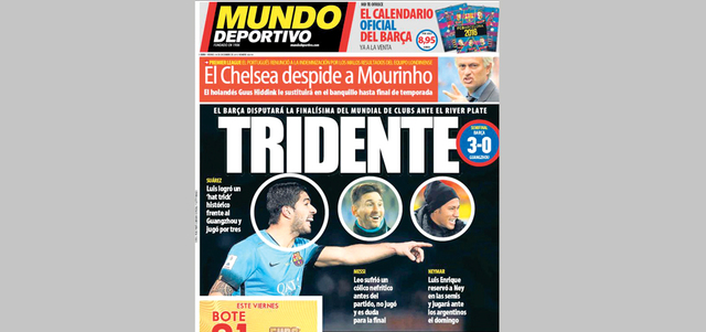 غاب نجم فريق برشلونة، ليونيل ميسي، عن تدريبات الفريق يوم أمس، استعداداً للنزال النهائي على لقب كأس العالم للأندية، الذي يقام يوم غدٍ باليابان، بعد أن بلغ الفريق النهائي على حساب غوانزهو الصيني، بثلاثية سواريز. ويلتقي برشلونة ريفربلايت الأرجنتيني الفريق العنيد. ولاتزال الأمور لم تحسم بَعْدُ بخصوص مشاركة ميسي في النهائي، حيث لم يتعافَ بعد من المغص الذي تعرض له قبل نصف النهائي. «موندو ديبورتيفو»