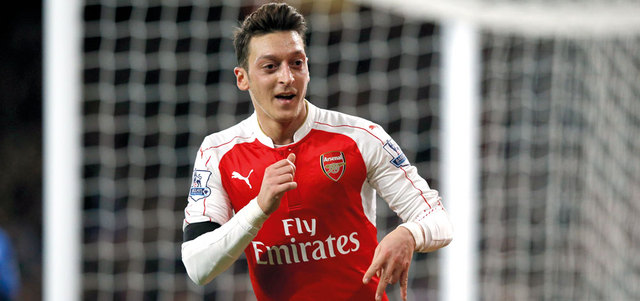 أوزيل صنع 16 هدفاً هذا الموسم مع أرسنال وساهم بفوزه على بورنموث أول من أمس. أ.ف.ب
