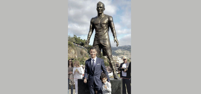 وتعرض التمثال البرونزي لرونالدو، البالغ طوله 3.4 أمتار في جزيرة ماديرا،