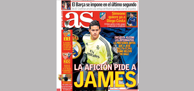 اختار المشاركون في تصويت على موقع صحيفة «أس» الإسبانية، أول من أمس، الكولومبي خيمس رودريغيز ليكون البديل الأول لغاريث بيل المصاب، وليس خيسيه، وذلك بنسبة 62.7% مقابل 37.3%. وسيغيب بيل ثلاثة أسابيع عن الريال، ما سيفتح الباب أمام البحث عن بديل له في المباريات المقبلة، وسينحصر ذلك بين كل من الكولومبي، والنجم الإسباني الشاب. وقد تكون هذه الفرصة التي انتظرها خيمس الذي لم يحظ بفترة لعب مستقرة مع الريال هذا الموسم. «أس»