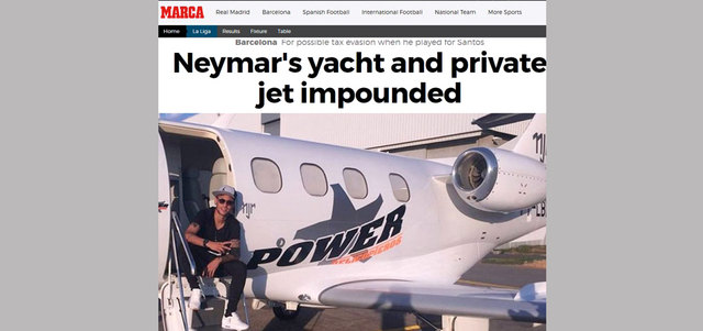 قرّرت المحكمة الفدرالية في البرازيل تجميد العديد من الممتلكات الخاصة بنجم برشلونة، البرازيلي نيمار، والبالغة قيمتها 43 مليون يورو، بينها يخت وطائرة خاصة. وجاءت هذه الخطوة بطلب من سلطات الضرائب البرازيلية للمحكمة، لضمان قيام اللاعب بتسديد ما عليه من ضرائب بقيمة المحجوزات. ويُتهم نيمار ووالده وعائلته بالتهرب الضريبي في الفترة بين 2011، و2013 حين كان لايزال لاعباً في فريق سانتوس. «ماركا»