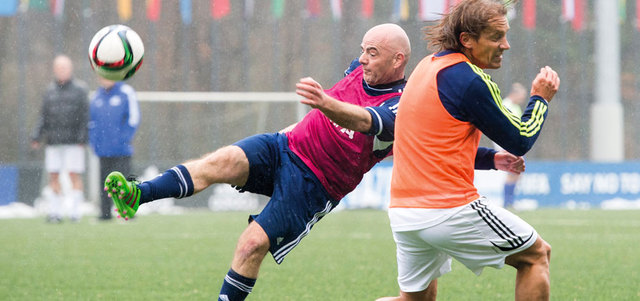 إنفانتينو بدأ فترته الرئاسية بمباراة لكرة القدم أول من أمس. أ.ب