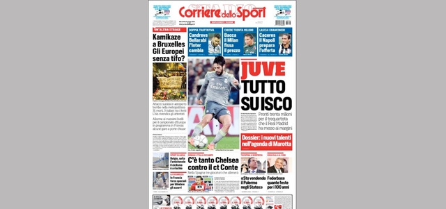 يخشى نادي يوفنتوس من رحيل بعض لاعبيه في الفترة المقبلة، وقد يكون بينهم الفرنسي بول بوغبا، والأرجنتيني ديبالا، وكذلك الإسباني ألفارو موراتا، الأمر الذي يحتم على النادي البحث عن لاعبين جدد، في مقدمتهم المهاجم الأوروغوياني إدينسون كافاني، وكذلك الإسباني ايسكو. ولا يعيش الأخير اوقاتاً طيبة في ريال مدريد، ما يجعل امر انتقاله مطروحاً، لكن اليوفي رصد 30 مليون يورو فقط للصفقة. «كوريرا»