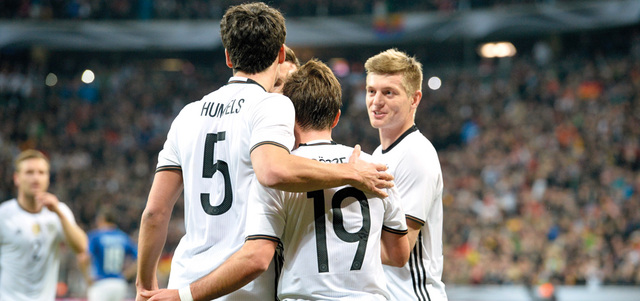 استعاد المنتخب الألماني اتزانه سريعاً بعد الهزيمة 2-3 أمام نظيره الإنجليزي ودياً السبت الماضي، وحقق فوزاً ساحقاً 4/1 على إيطاليا، فك به عقدة 21 عاماً دون الفوز على الآزوري، وذلك في المباراة الودية أول من أمس في إطار استعدادات الفريقين لكأس أوروبا (يورو 2016) بفرنسا.