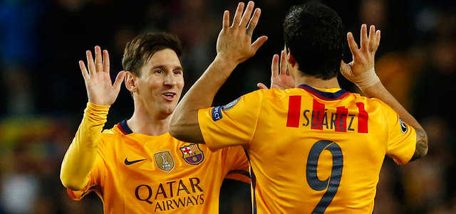 ميسي وسواريز يحتفلان بالفوز. إي.بي.إيه