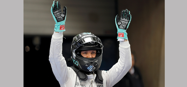 روزبرغ سعيداً بعد الفوز في تجارب شنغهاي أمس. أ.ف.ب