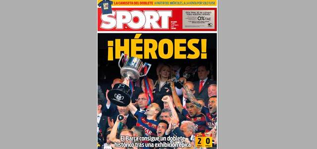 وصفت الصحافة الإسبانية الصادرة أمس، فوز برشلونة بكأس ملك إسبانيا أمام إشبيلية بـ«العمل البطولي»، مشيدة بقائد الفريق أندريس إنييستا، والذي اعتبرته كلمة السر وراء هذا الفوز. وعنونت صحيفة «سبورت» غلافها: «أبطال»، وقالت: «لا توجد تركيبة أكثر فتكاً من تلك التي تجمع بين المهارة والشخصية، أفضل فريق لبرشلونة عبر التاريخ أظهر أنه يمكن أن يكون الأكثر شراسة ومقاومة أيضاً».