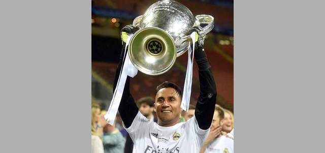 نافاس يرفع كأس دوري أبطال أوروبا. أ.ف.ب