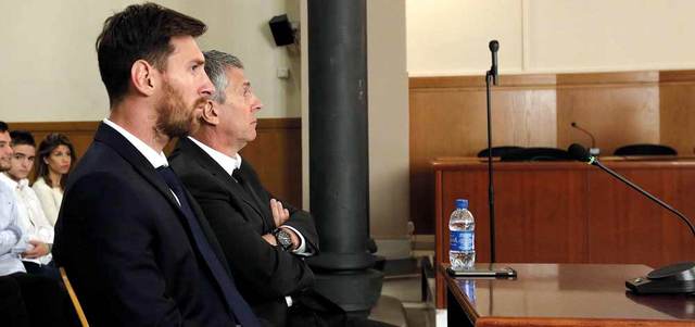 ميسي خلال جلسة المحاكمة أمس. إي.بي.إي