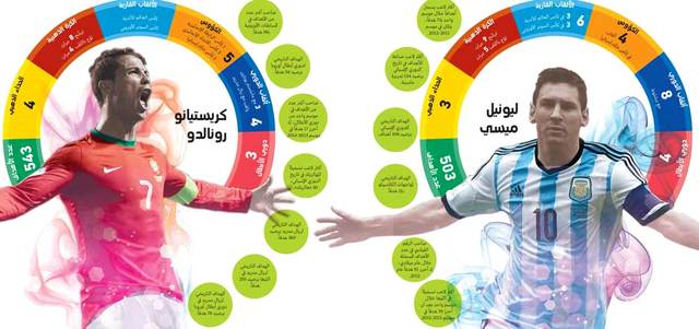 يتجدد الصراع التاريخي والتقليدي بين الثنائي الأفضل عالمياً في كرة القدم، الأرجنتيني ليونيل ميسي، والبرتغالي كريستيانو رونالدو، مع إقامة بطولتي كوبا أميركا، ويورو 2016، التي تنطلق اليوم، إذ يتشابه الغريمان التقليديان في برشلونة وريال مدريد، في أنهما لم يحققا أي ألقاب دولية مع منتخبي بلادهما، باستثناء فوز ميسي بلقب ذهبية الأولمبياد مع «التانغو»، لكن مازال يستعصي عليه الفوز بلقبي كأس العالم أو كوبا أميركا.