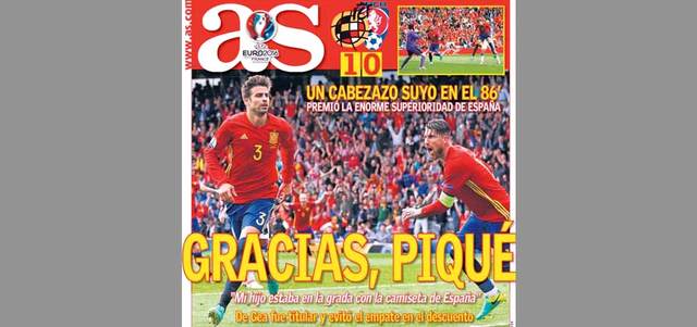 أطلقت الصحافة الإسبانية، الصادرة أمس، لقب «البطل القومي» على اللاعب الإسباني، جيرارد بيكيه، بعد أن سجل هدفاً حاسماً منح منتخب بلاده الفوز على منتخب جمهورية التشيك في أولى مبارياته في البطولة، كما أشادت أيضاً بانيستا الذي وصفته بـ«الرائع».