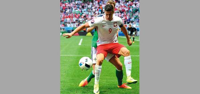 بولندا تراهن على نجمها ليفاندوفسكي لتحقيق المفاجأة أمام الألمان. أ.ف.ب