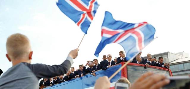 تلقى الآيسلنديون خسارة قاسية بخماسية مقابل هدفين في آخر مباراة لهم في بطولة أوروبا لكرة القدم «يورو 2016»، فودّعوا البطولة من دور الثمانية أمام فرنسا، لكن نجوم هذا المنتخب الأوروبي الصغير تم استقبالهم كالأبطال، كونهم خالفوا كل التوقعات، ووصلوا إلى ربع نهائي البطولة في أول مشاركة لهم في إنجاز تاريخي قد لا ينساه الآيسلنديون، الذين تعرف إليهم الكثيرون على خريطة كرة القدم للمرة الأولى في هذه البطولة، كما أنهم كانوا وراء أكبر المفاجآت حين أطاحوا بالإنجليز في ثُمن النهائي.